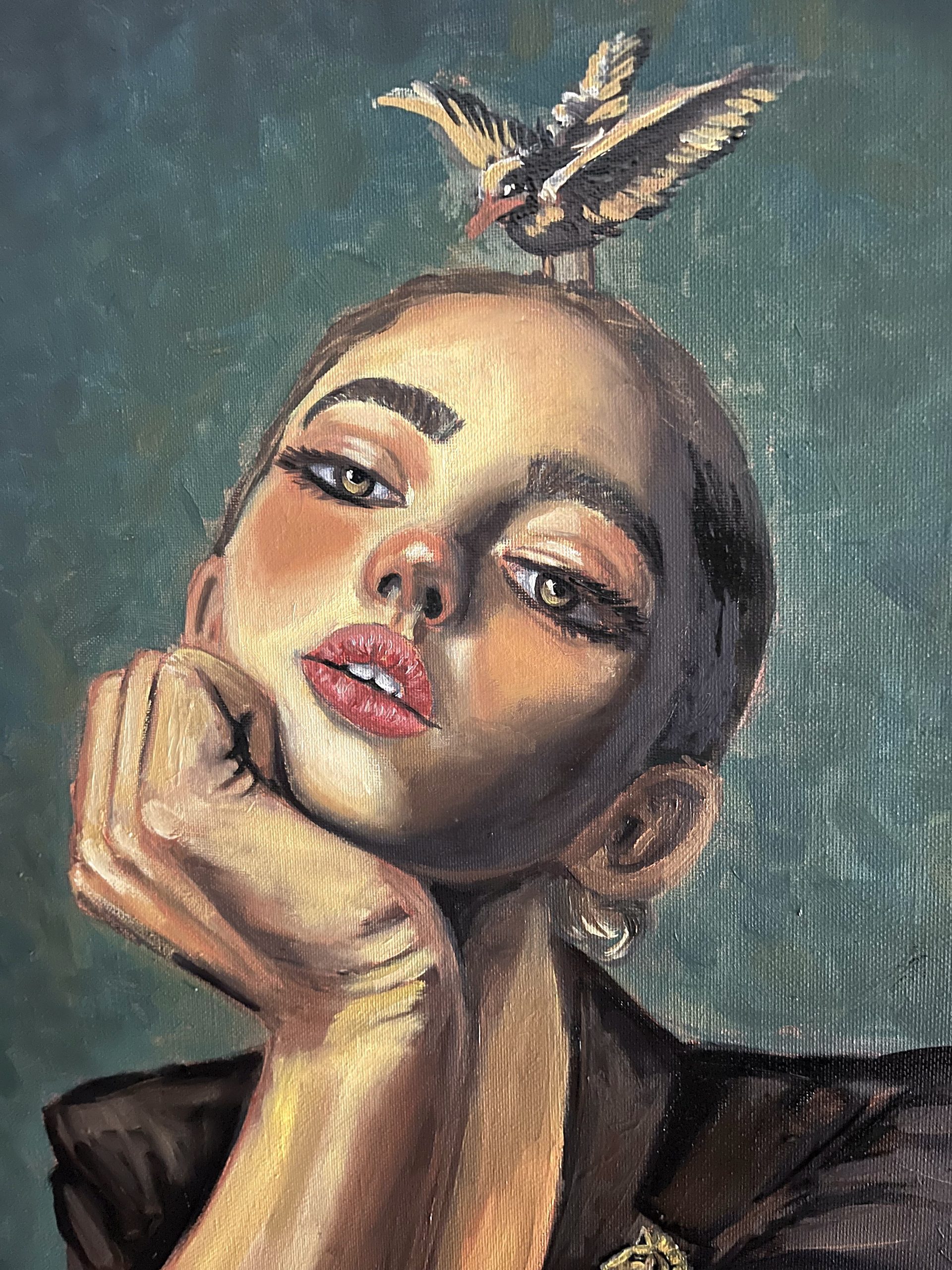 Within the Chess series, the body functions as a metaphor for strategic thinking. The bird resting on the head does not act as a symbolic ornament, but as a mental extension: vigilance, intuition, and heightened awareness. It is the mind observing the board from above, measuring consequences, anticipating the next move. Here, strength and vulnerability coexist as inseparable parts of the same decision-making process.
